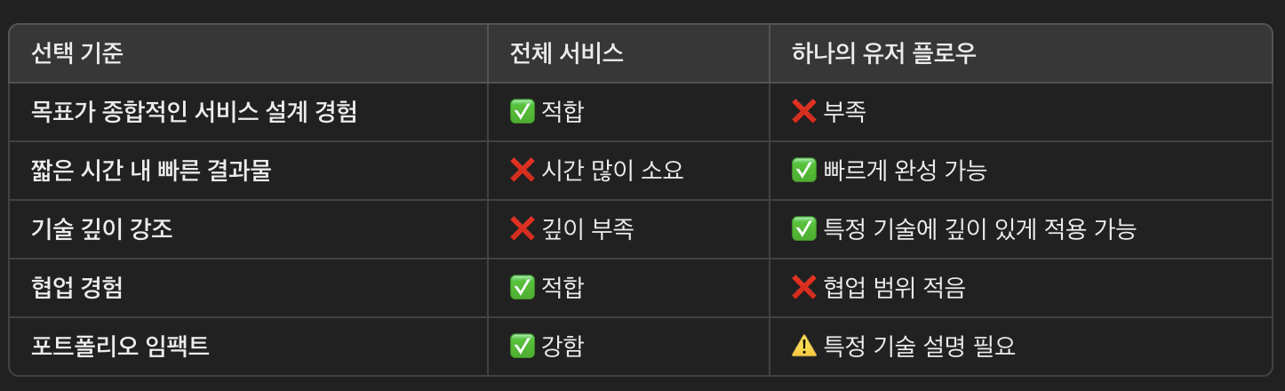‘전체 서비스를 설계할 것인가, 특정 유저 플로우부터 시작할 것인가’에 대한 고민을 GPT에게도 질문해 보았습니다.